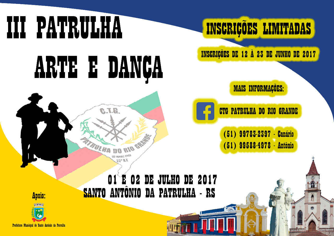 O III Patrulha Arte e Dança ocorrerá nos dias 1º E 2 DE JULHO DE 2017, em Santo Antônio da Patrulha!